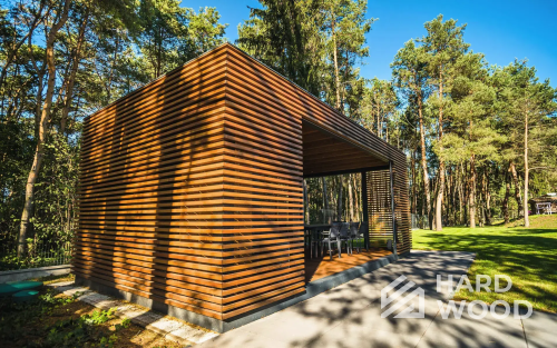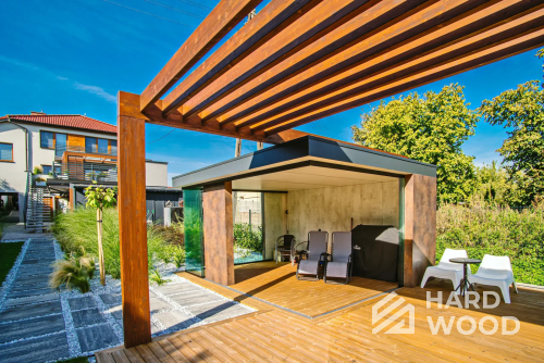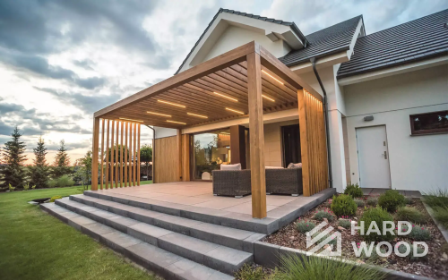 Каркас и стойки традиционно выполняем из пород, устойчивых к влаге и нагрузкам. Внешние обшивки — из имитации бруса или планкена; для настилов отлично работают лиственница и композитные террасные доски. Важна не «марка на бумаге», а грамотная проклейка узлов и защита от капиллярной влаги.