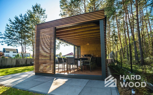 Открытая беседка — максимум воздуха и простоты. Она быстрее строится и легче в уходе, но больше зависит от погоды. Идеальна для мангала и лёгких барбекю-модулей.