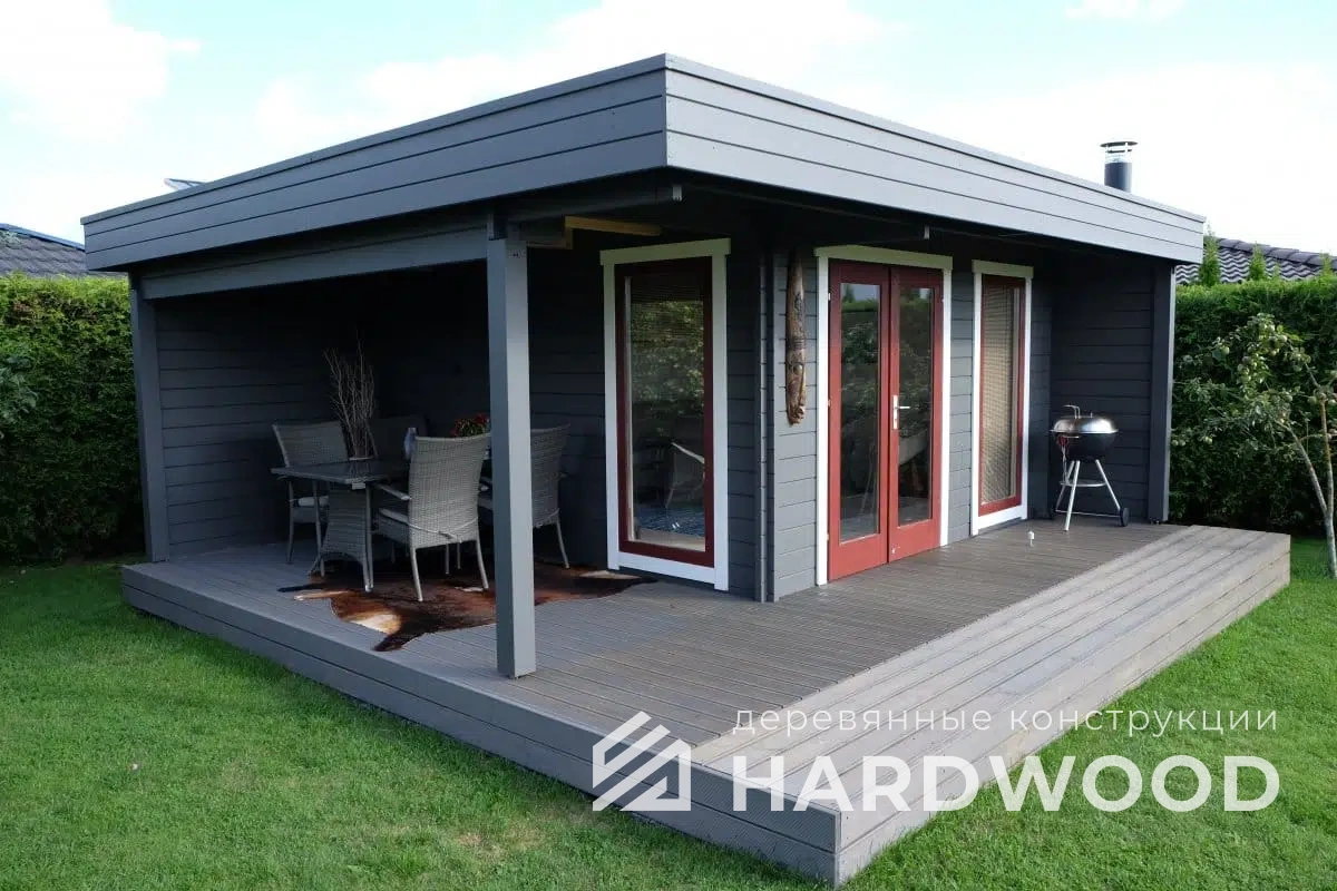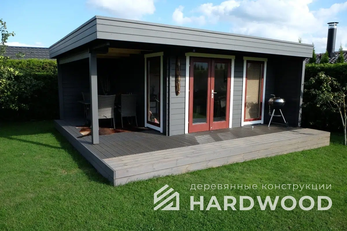 Каркас и стойки традиционно выполняем из пород, устойчивых к влаге и нагрузкам. Внешние обшивки — из имитации бруса или планкена; для настилов отлично работают лиственница и композитные террасные доски. Важна не «марка на бумаге», а грамотная проклейка узлов и защита от капиллярной влаги.