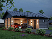 | Название модели: | Навес для двух машин с хозблоком из дерева №169 |